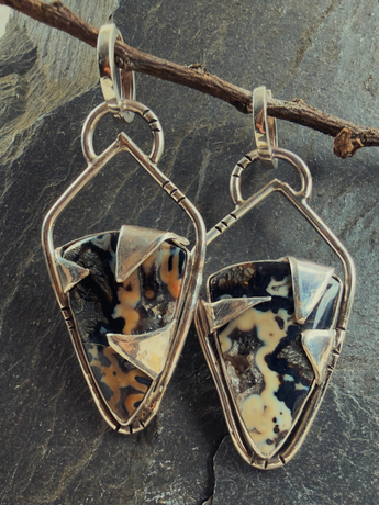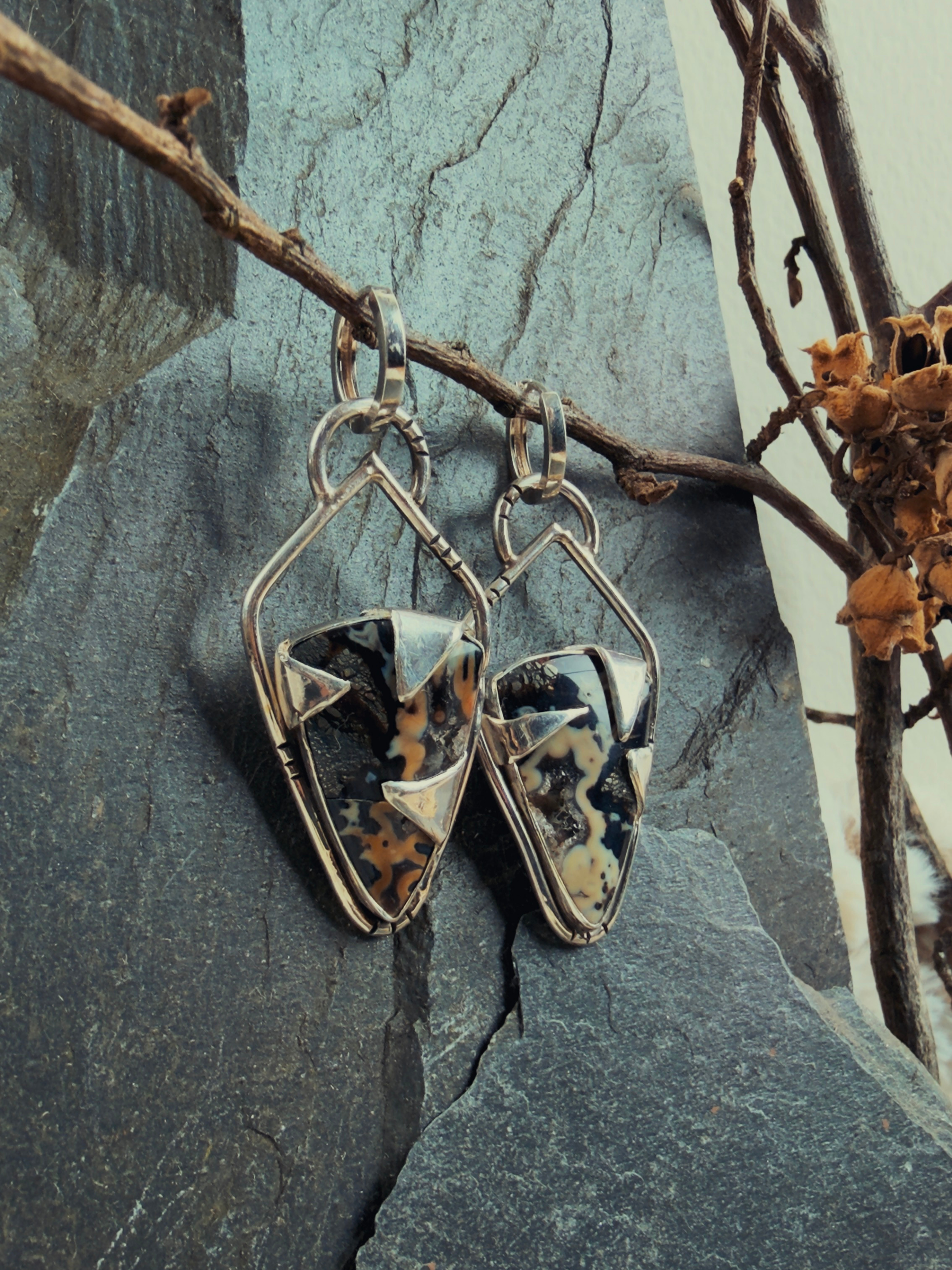 These huggie earrings trace those same dark veins through natural marcasite, each pair one of a kind because the stone itself refuses to be ordinary. Framed in sterling silver with subtle texture and strong lines, they sit close to your ear like a whisper only you can hear. They're meant to be worn daily, grounding, protective, the kind of talisman you don't take off.