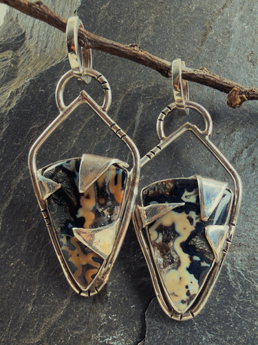 Pendientes de jaspe orbicular con borde druzy